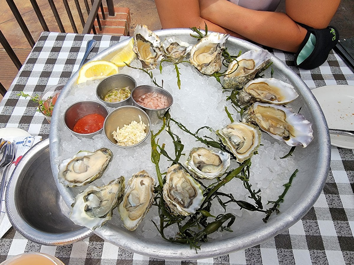 I've been coming here for several years and I have a new favorite! We usually come for lunch when the restaurant is quiet, it does have a tendency to get loud. However, they have an awesome outside eating area. When it comes to food I have a REALLY finicky stomach. The server was so accommodating and it made all the difference. Katherine was very patient and left a few things off of this salad LOADED with shrimp, scallops, bacon, eggs, avocado and crab. All of the flavors blended together perfectly and the salad was HUGE! It is easily sharable or 2 meals. It's a little pricey but not over the top considering how much seafood is in the salad. We usually eat at one of the booths in the bar. You need to get seated from the front desk but you can seat yourself at a bar stool. Also, there is an oyster bar at the bar. I saw one patron choose her own oysters! Highly recommend it! Enjoy!